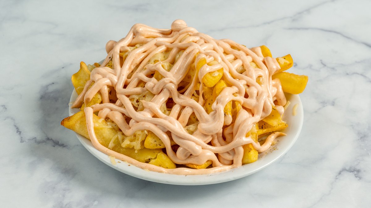 Πατάτες Τηγανητές με Τυρί Gouda και Κίτρινη Σως