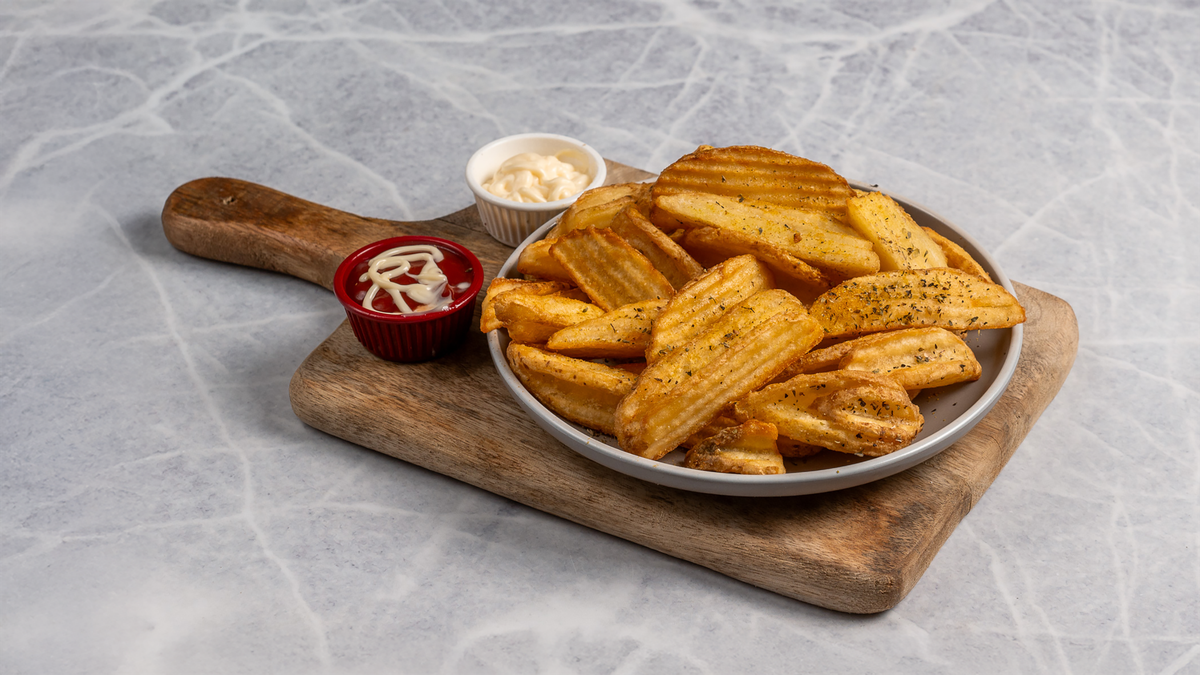 Τραγανά κυβάκια πατάτας σοταρισμένα με σκόρδο, κόλιανδρο, πιπεριές τσίλι και μπαχαρικά