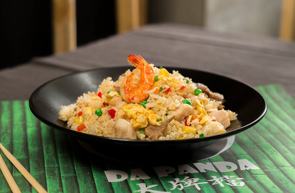 Τηγανητό ρύζι με κοτόπουλο. Περιέχει αυγό