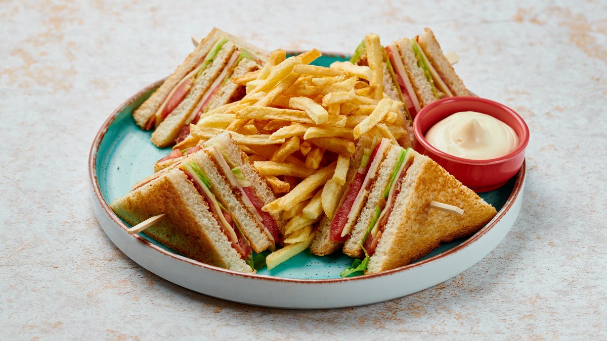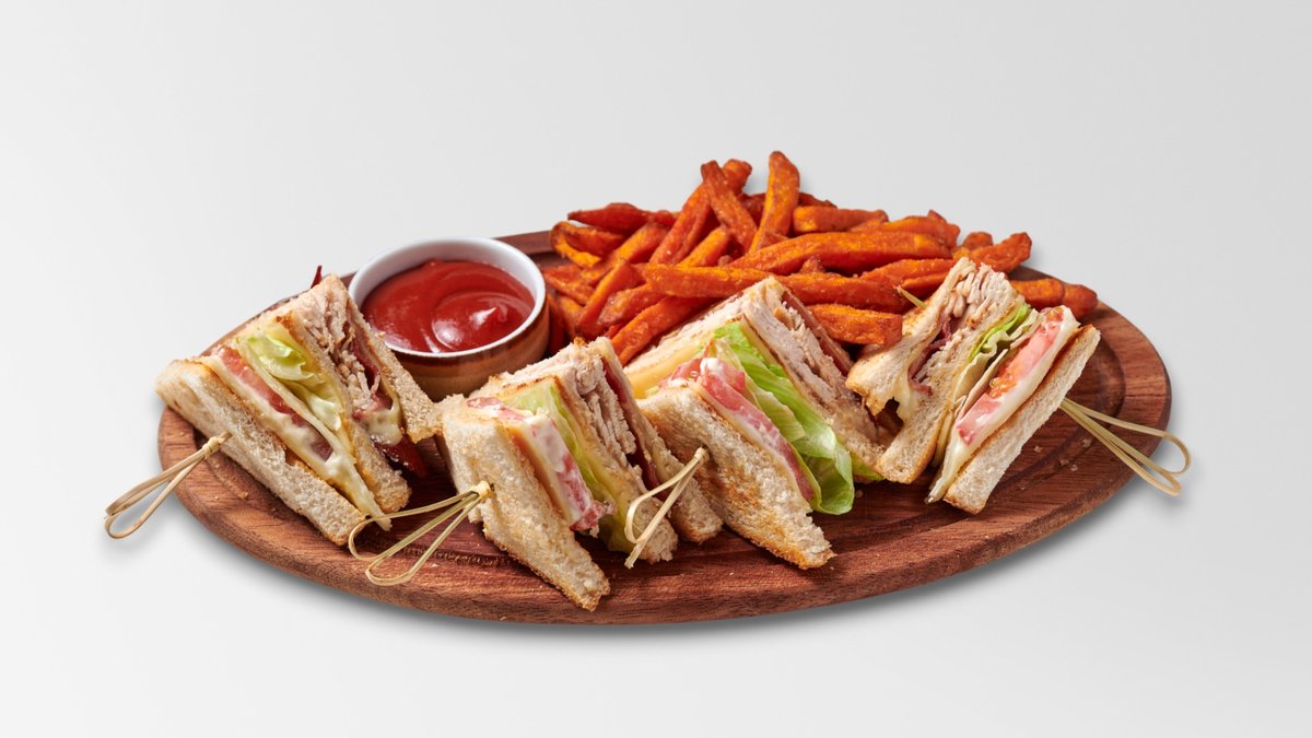 Με φιλέτο γαλοπούλα, διπλό edam, ντομάτα, μαρούλι και μαγιονέζα. Συνοδεύεται από πατάτες τηγανητές.