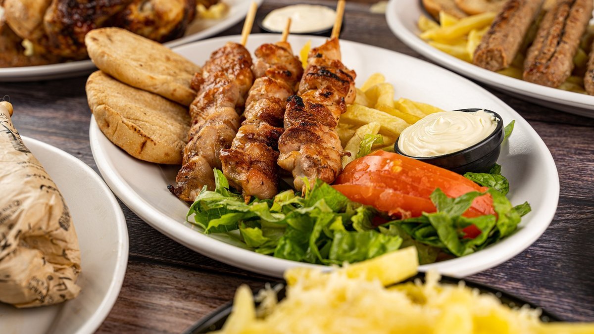 Souvlaki with or without meat, vegan options for pitas, sandwiches and wraps, delightful appetizers and meat by the kilo!