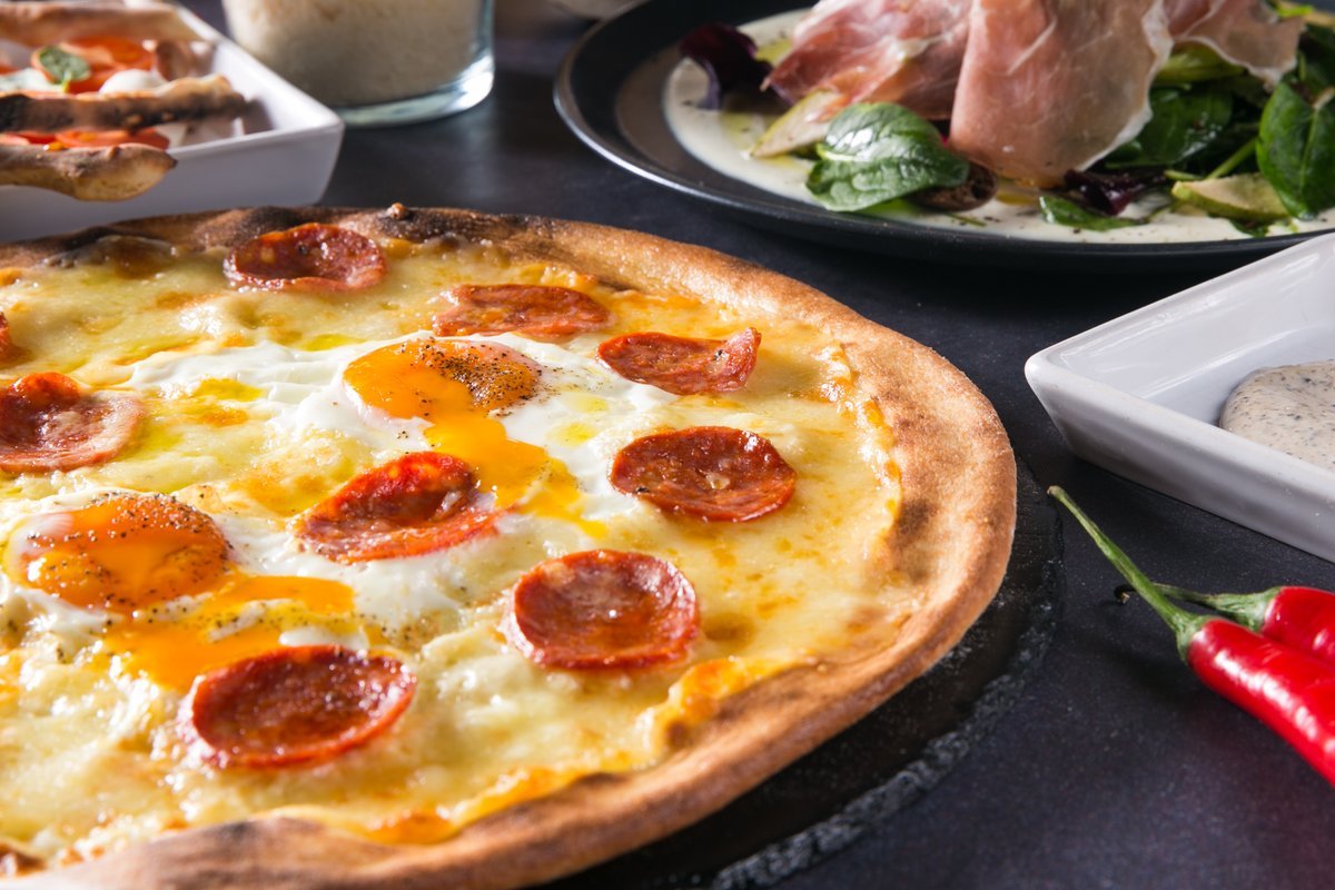 Με πεπερόνι, μοτσαρέλα, σάλτσα ντομάτας, ταλέτζιο και θυμάρι