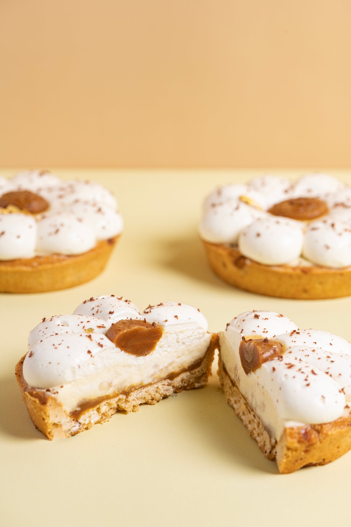 Τραγανή τάρτα με γέμιση καραμέλας, κρέμα patisserie, φρέσκες μπανάνες και αρωματική σαντιγύ βανίλιας
