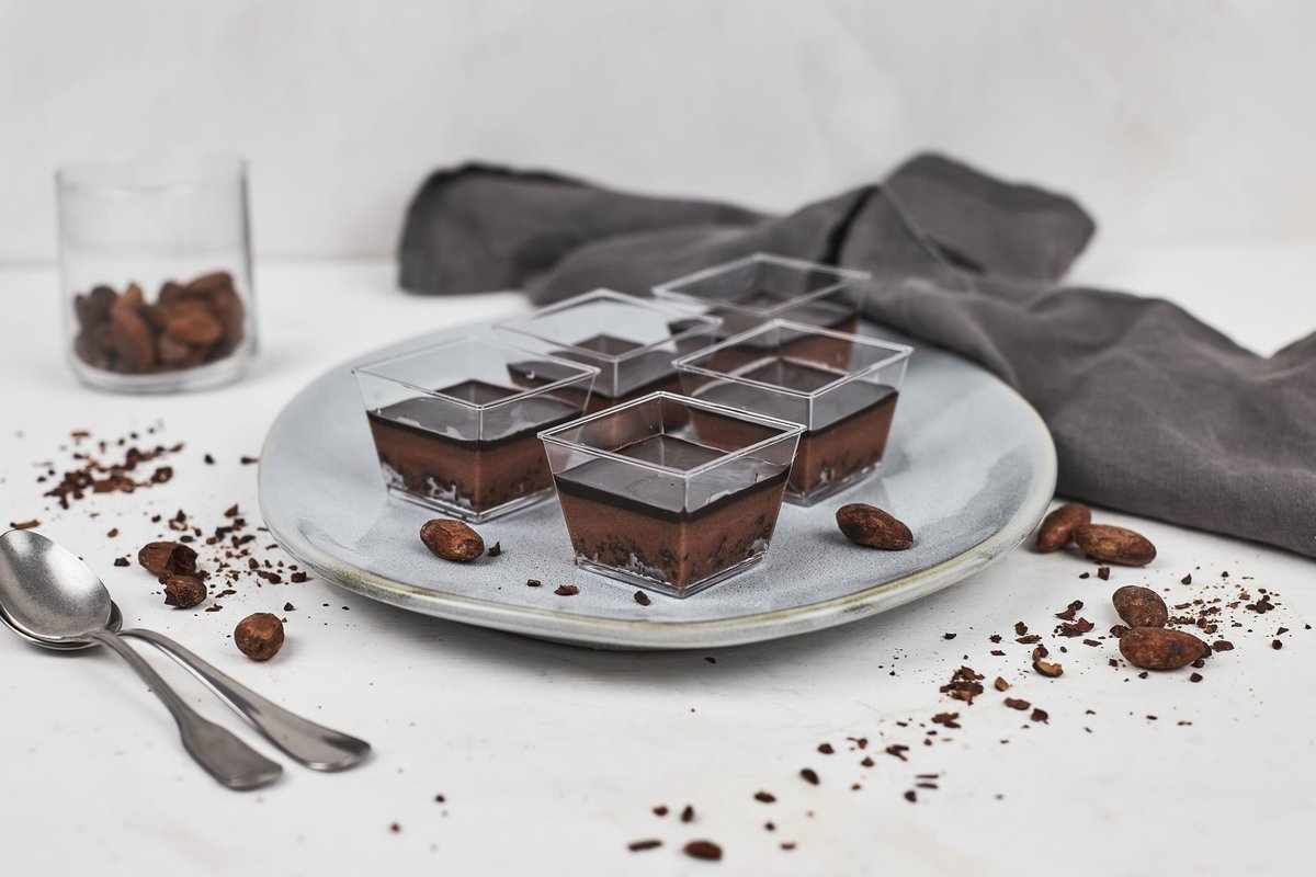 Μους σοκολάτας υγείας & μους βανίλιας σε crumble από κακάο