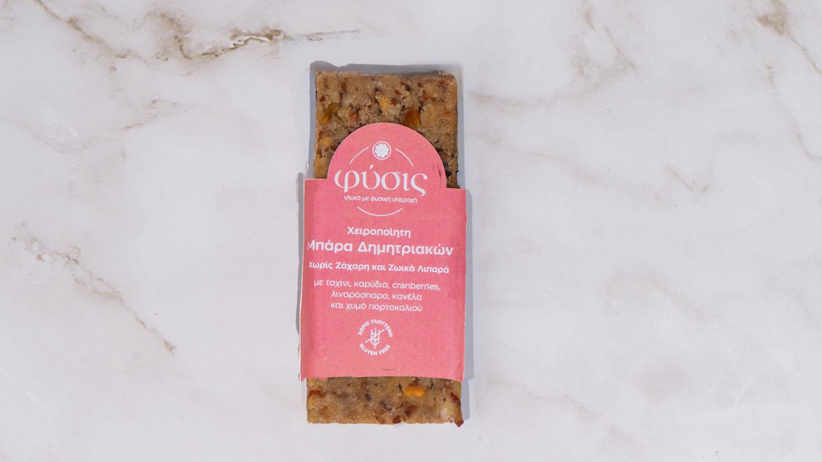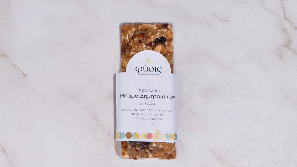 Αρωματική μπάρα με μέλι, βρώμη, ξηρούς καρπούς, σταφίδες, cranberries και ξύσμα λεμονιού.