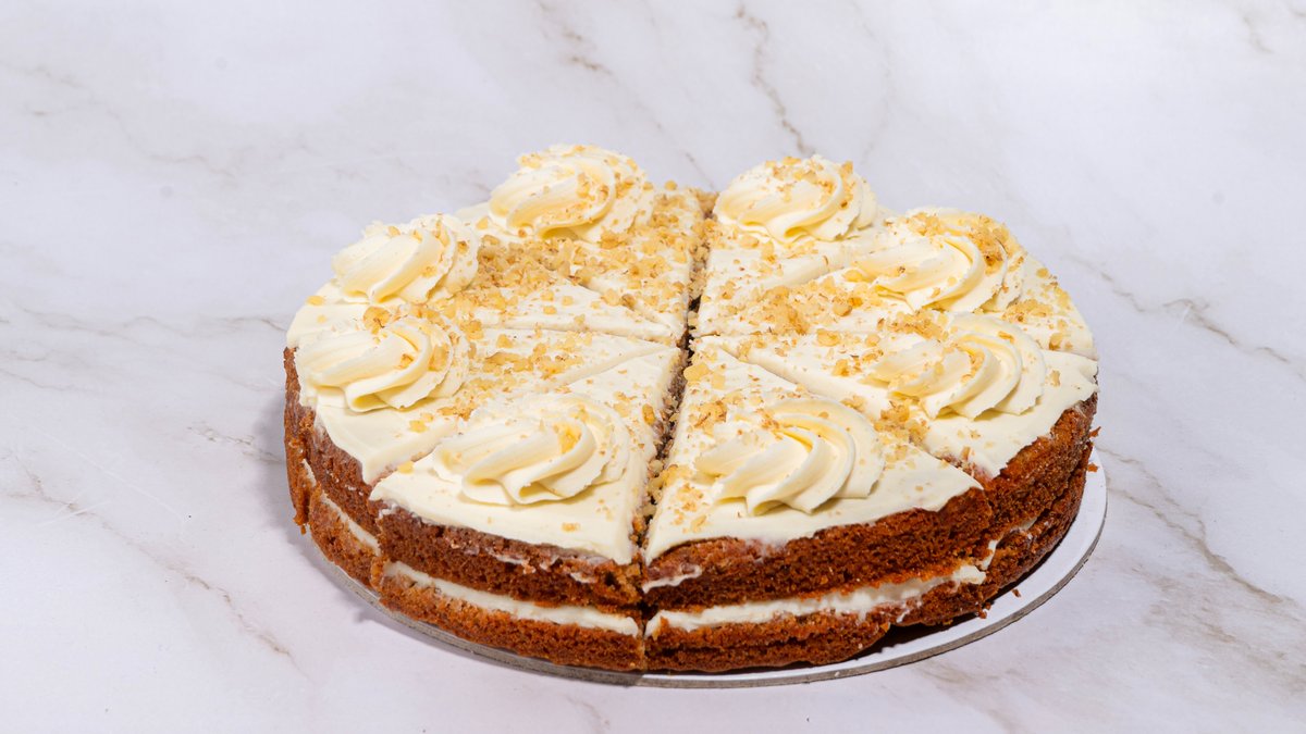 Κέικ καρότο με επικάλυψη κρέμας από ανθότυρο, μανούρι, γιαούρτι, ξυνόγαλο και λάιμ.
