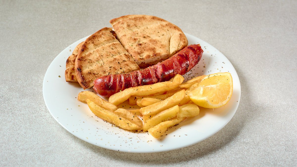 Συνοδεύεται από πίτα και πατάτες τηγανητές