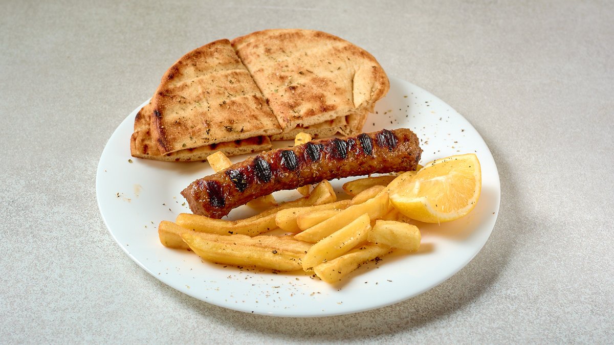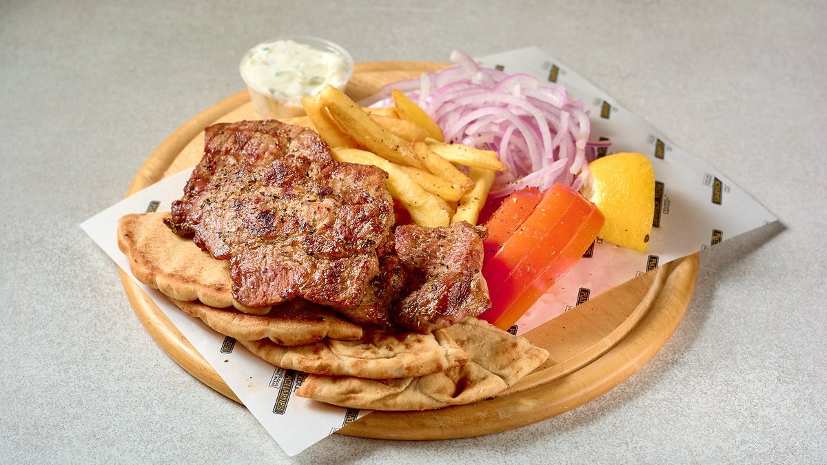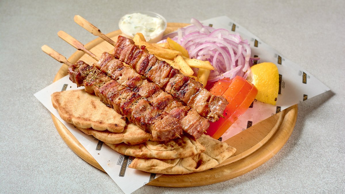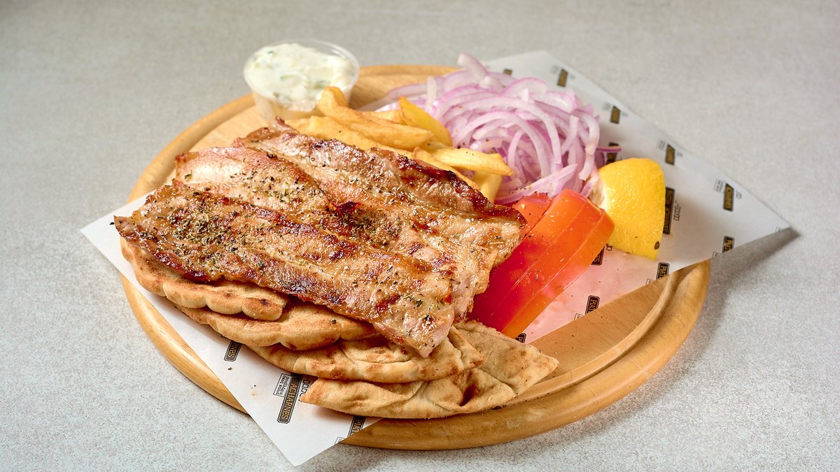 3 Τεμάχια. Συνοδεύεται από πατάτες τηγανητές, ντομάτα, κρεμμύδι, τζατζίκι και 1 πίτα