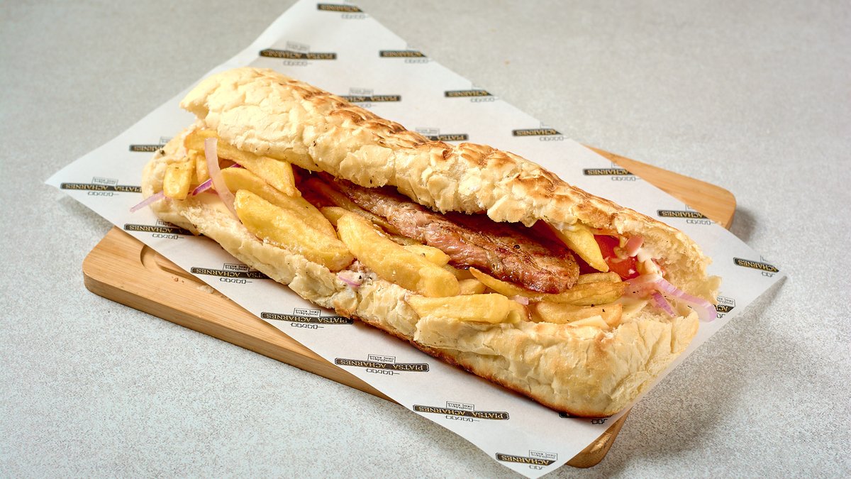 Σάντουιτς 1 τεμάχιο καλαμάκι χοιρινό με τα υλικά της επιλογής σου