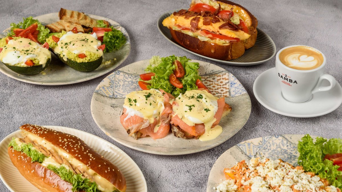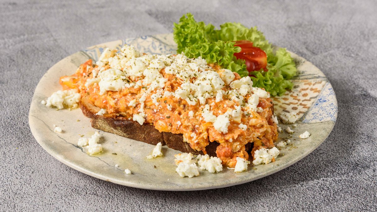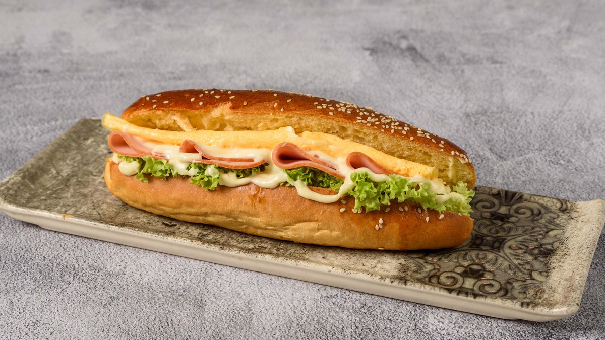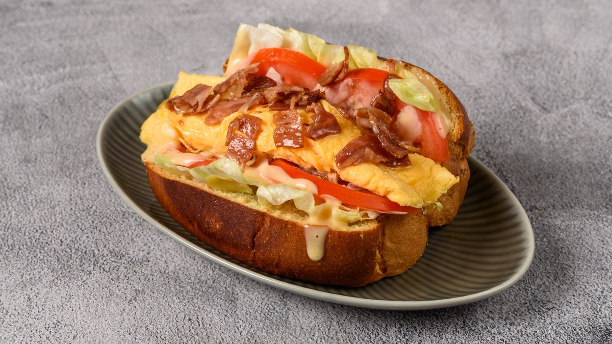 Ψωμί Brioche με ομελέτα, τυρί, γαλοπούλα, λόλα και sauce