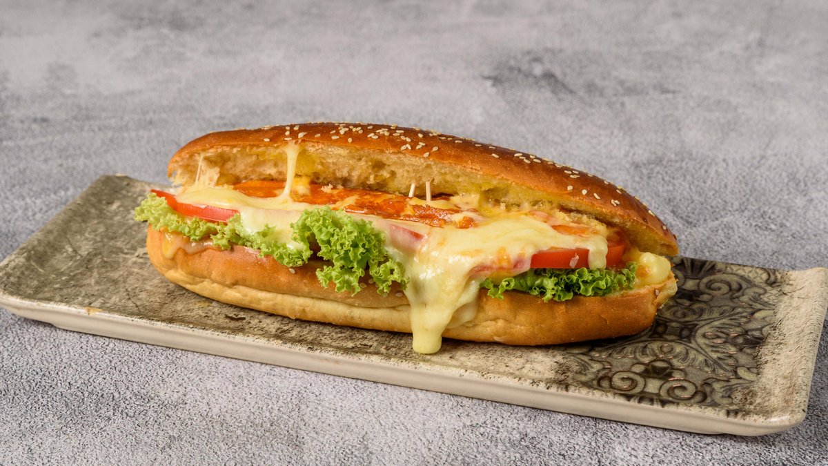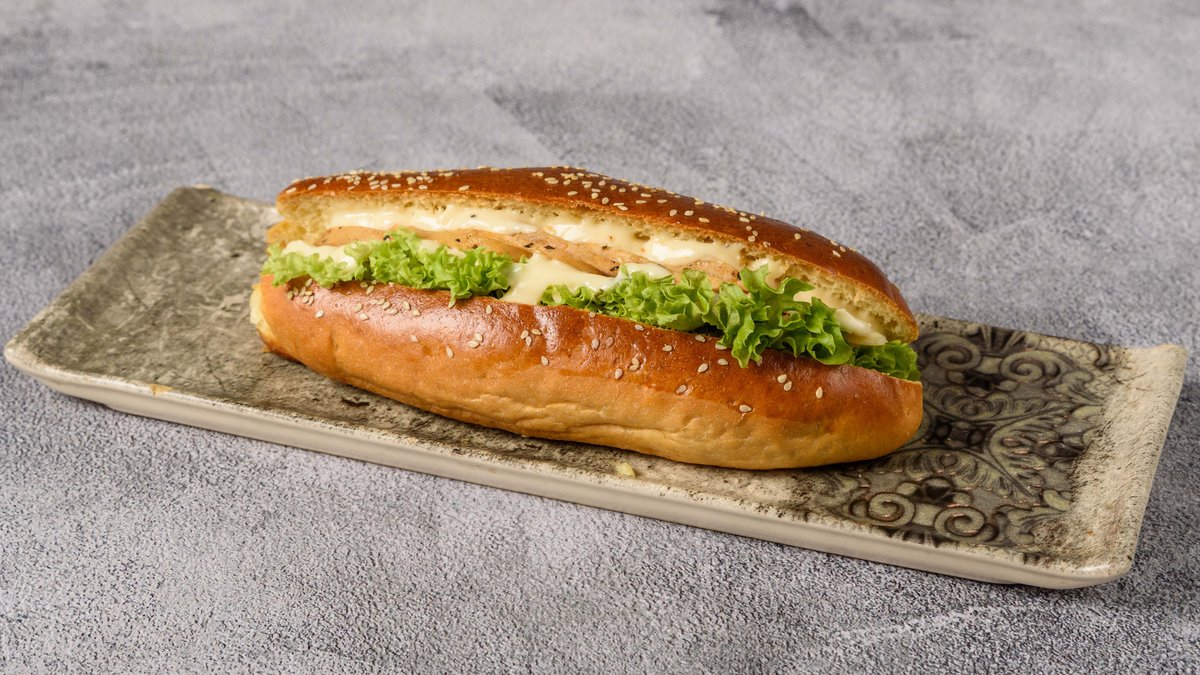 Ψωμί Brioche με κοτόπουλο, τυρί, λόλα, sauce