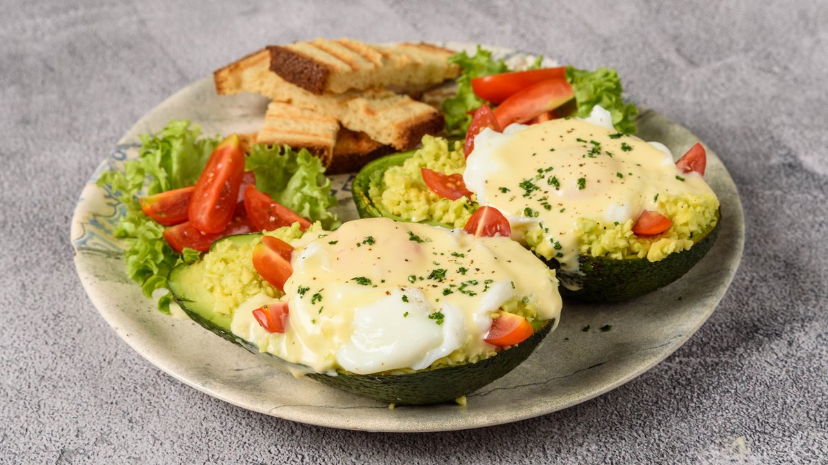 Τρία αυγά αβοκάντο και ντοματίνια