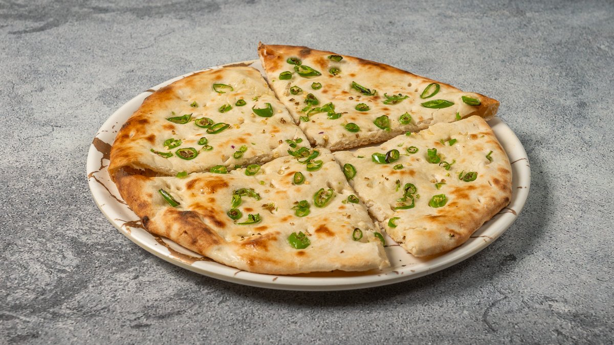 Η απόλυτη ευχαρίστηση για τους λάτρεις του τσίλι. Ελαφρώς καρυκευμένη βουτυράτη πίτα, πασπαλίζεται με φρέσκο ψιλοκομμένο κόκκινο και πράσινο τσίλι