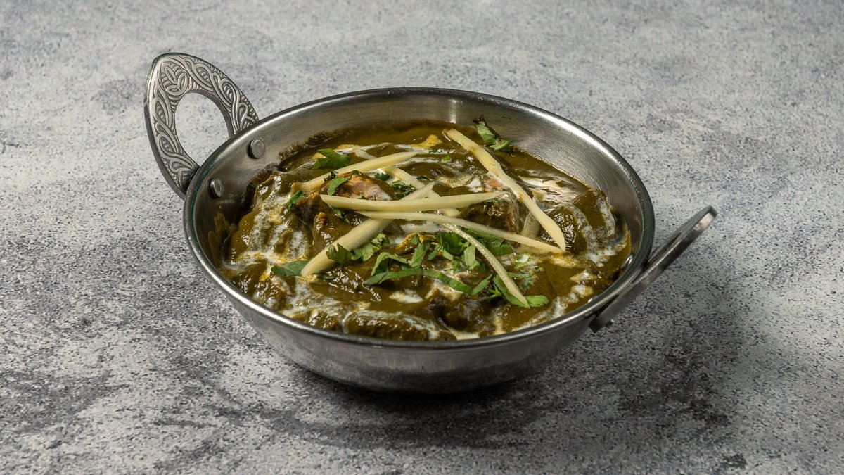 Η ψυχή των πιάτων της πολιτείας Punjab. Φρέσκο σπανάκι, ινδικά φύλλα μουστάρδας (σινάπι) και κυβάκια πατάτας, μαγειρεμένα σε εθιστικό μείγμα μπαχαρικών