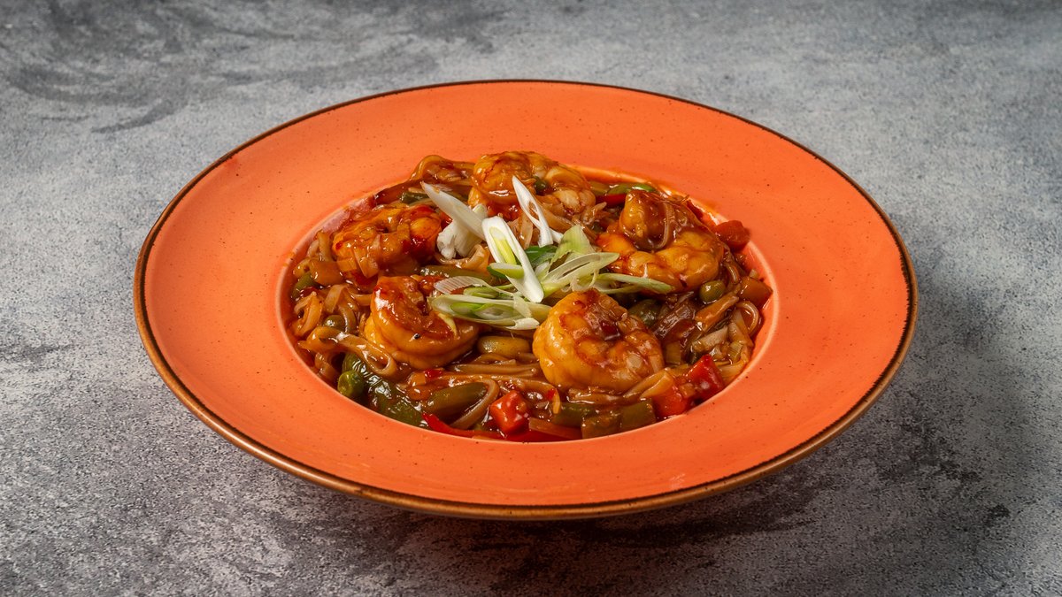 Το λατρεμένο πιάτο της ινδοκινεζικής κουζίνας. Μεγάλες γαρίδες μαριναρισμένες σε ινδικά μπαχαρικά σοτάρονται με φρέσκα λαχανικά και γλασάρονται με γλυκόξινη σάλτσα τσίλι