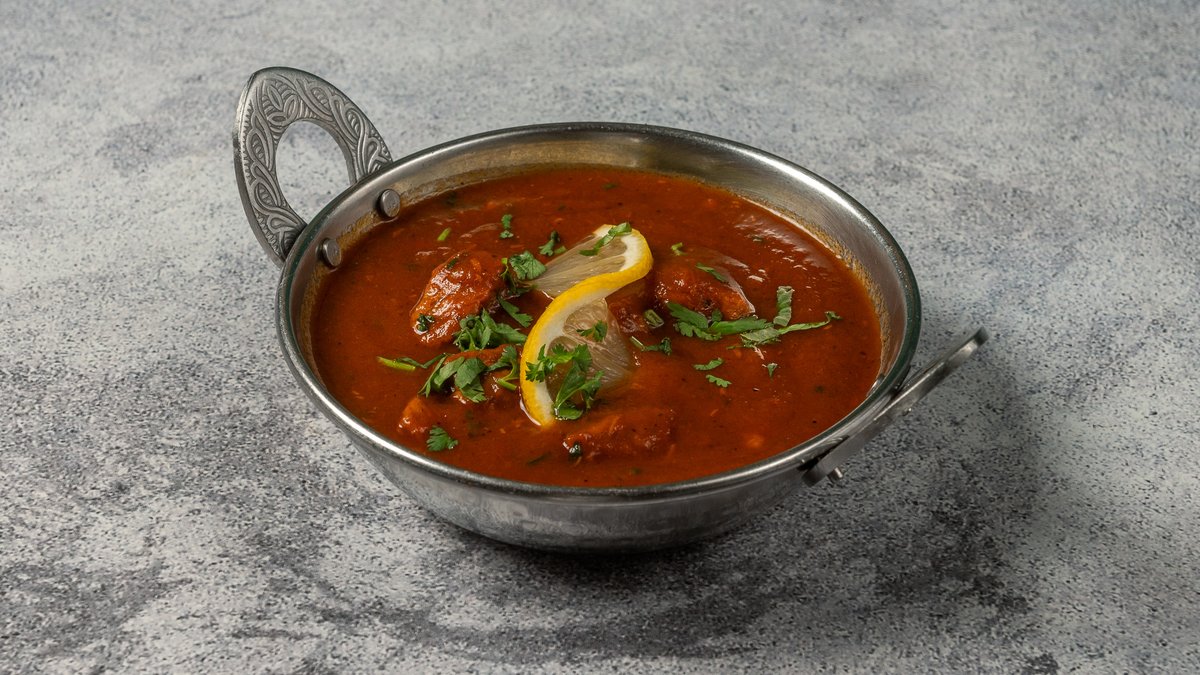Πιάτο της κουζίνας του Κασμίρ. Τρυφερές μπουκιές σιγομαγειρεμένες σε φρέσκια σάλτσα ντομάτας αρωματισμένη με σκόρδο, πιπερόριζα και ζεστά αρωματικά μπαχαρικά όπως το γαρύφαλλο και το κάρδαμο