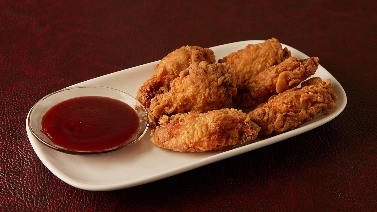 6 Τεμάχια. Τηγανητές φτερούγες κοτόπουλου συνοδεύονται από bbq sauce