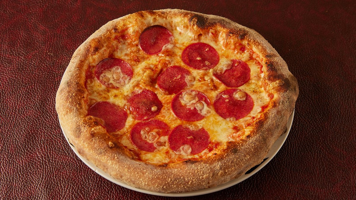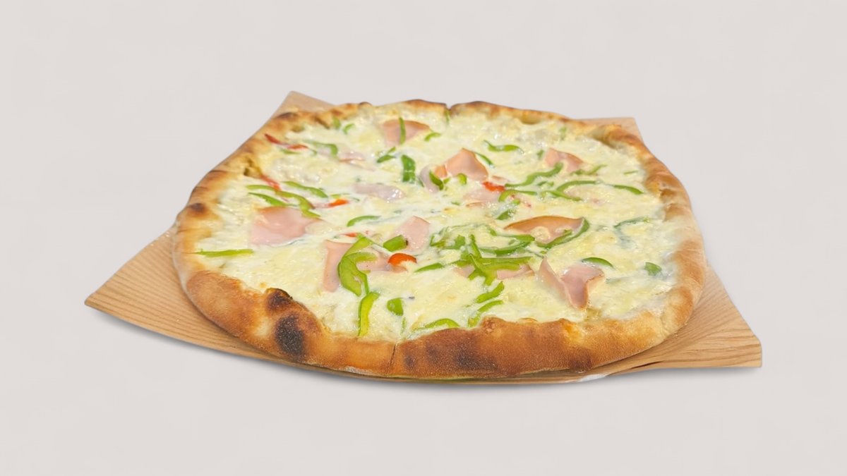 Σάλτσα ντομάτας, μοτσαρέλα, πιπεριές, φρέσκα μανιτάρια, καβουρμά, μοσχαρίσιο λουκάνικο και βοδινό λουκάνικο