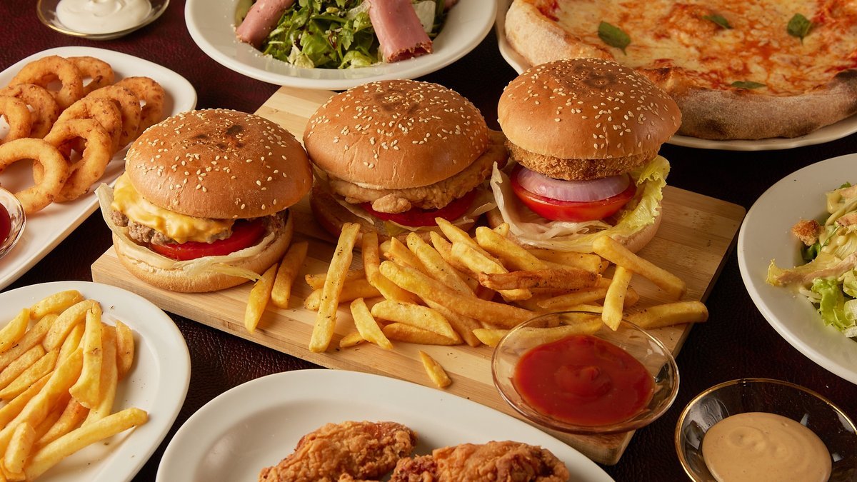 Τηγανητό μπιφτέκι λαχανικών με iceberg, ντομάτα, κρεμμύδι και pizza man sauce