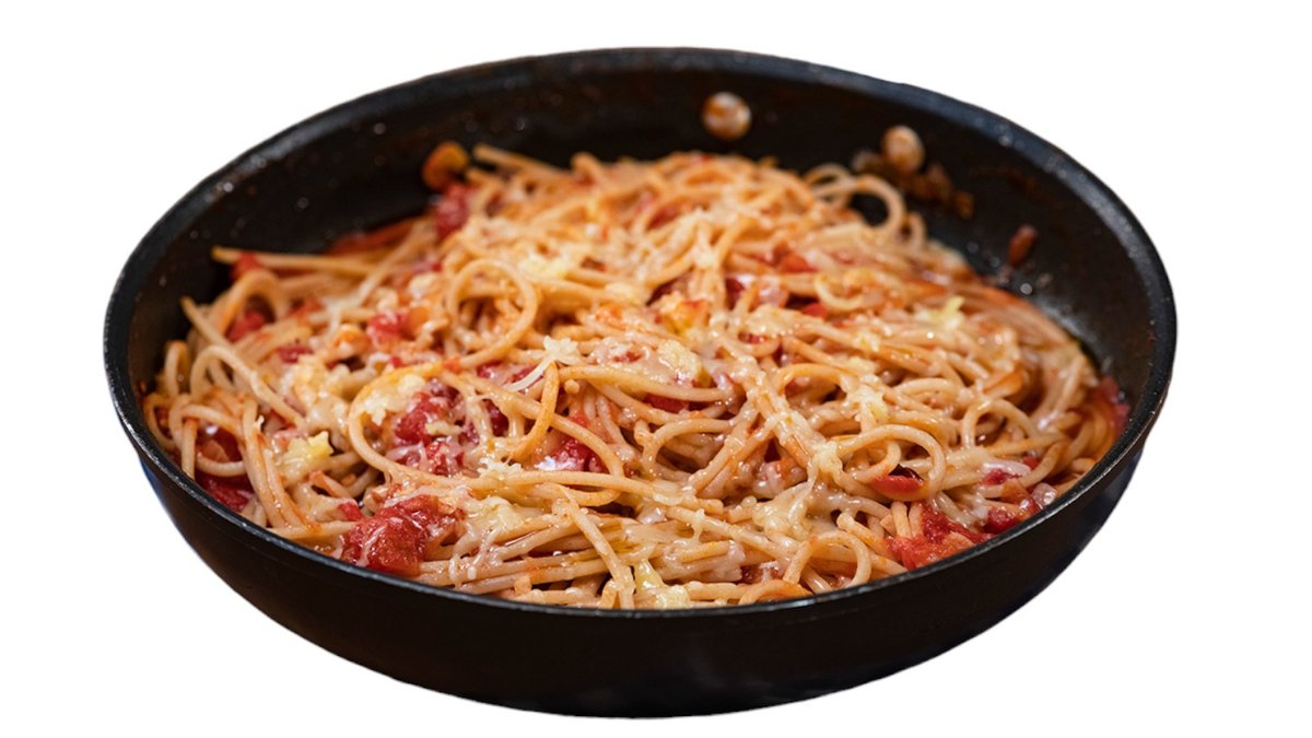 Με μπέικον, κρεμμύδι, σκόρδο, σάλτσα μπούκοβο και παρμεζάνα