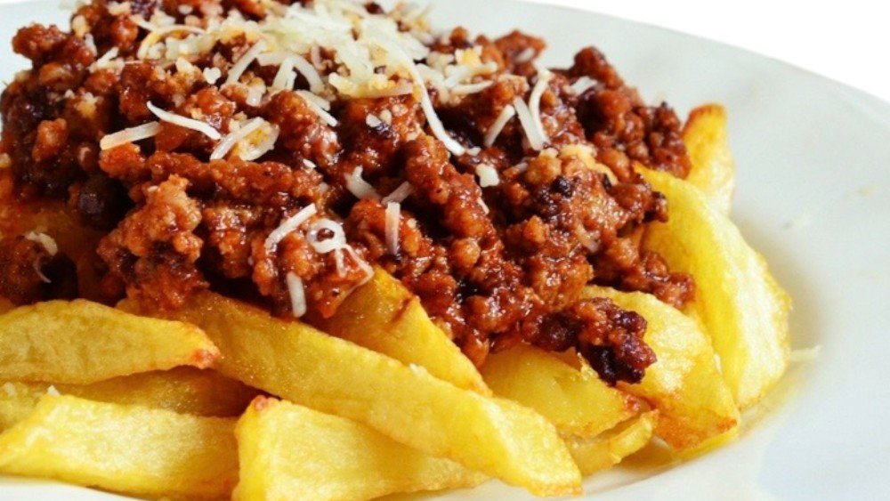 Πατάτες Τηγανητές με Κιμά και Τυρί