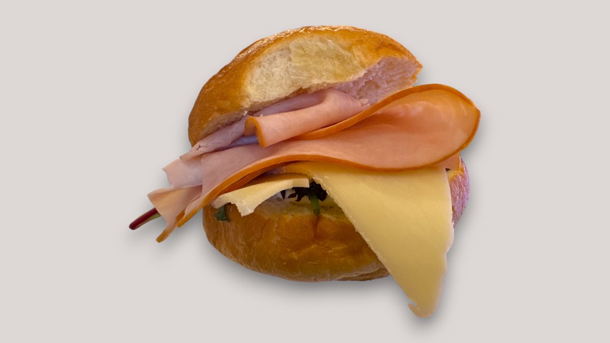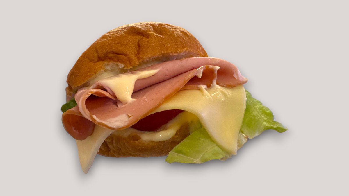 Μορταδέλα, μαρούλι, ντομάτα, τυρί, μαγιονέζα σε πατατόψωμο