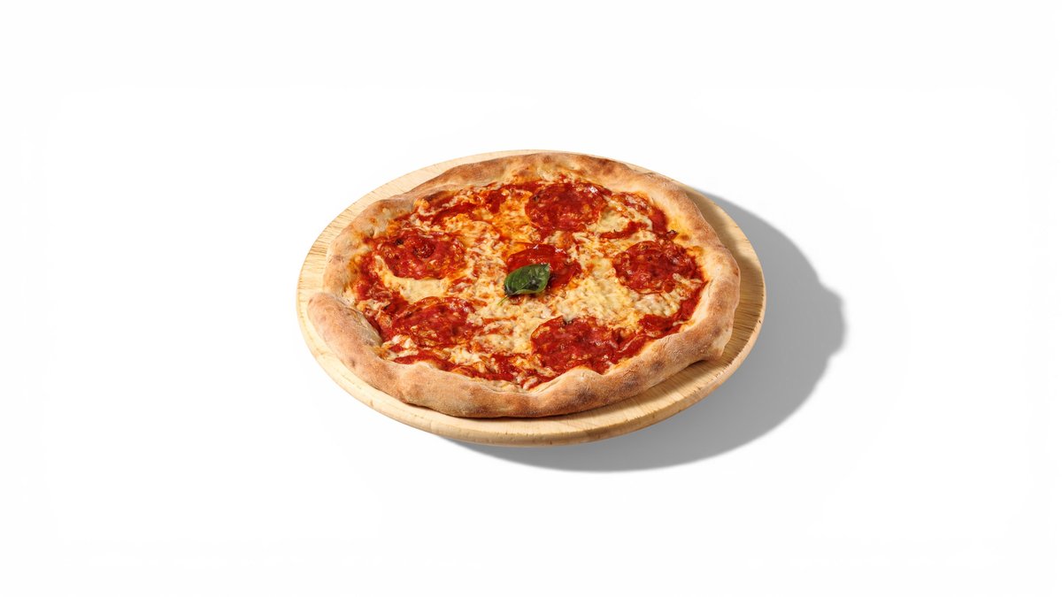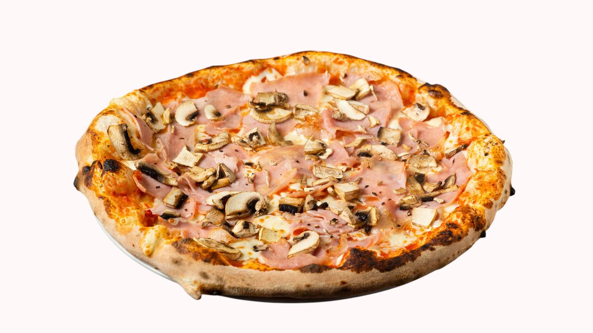With tomato sauce, mozzarella, prosciutto cotto, pepper, mushroom