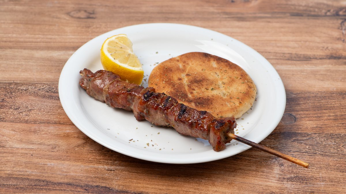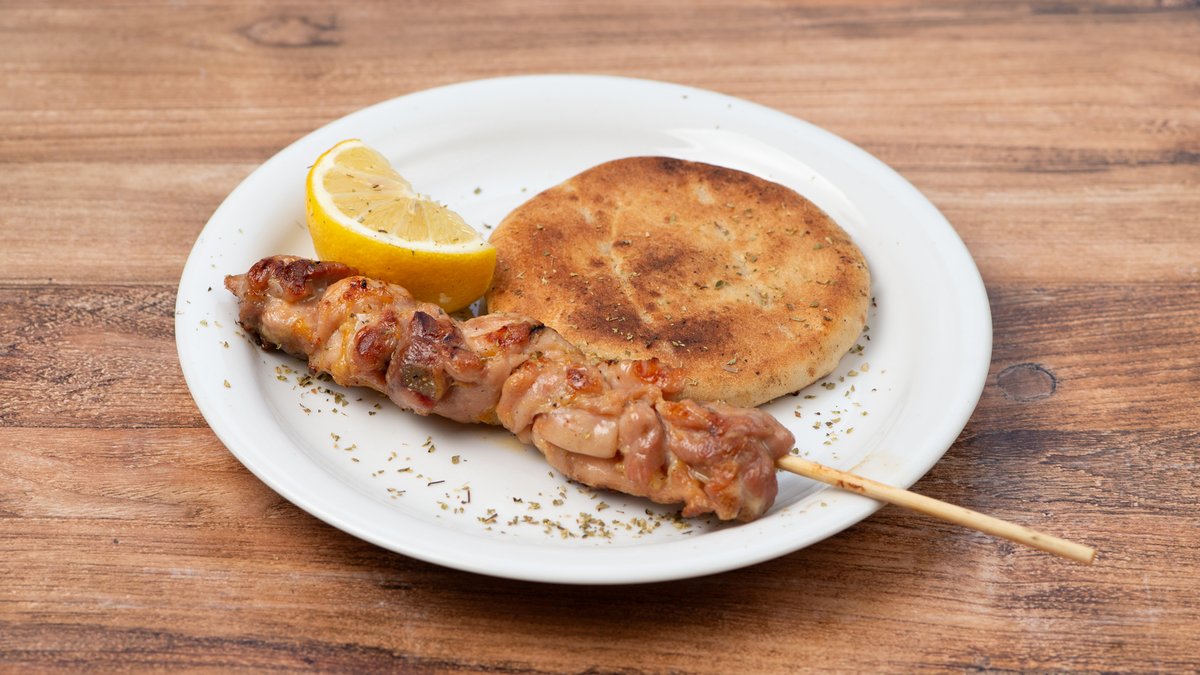 5 καλαμάκια χοιρινό ή κοτόπουλο + 1 σαλάτα μαρούλι