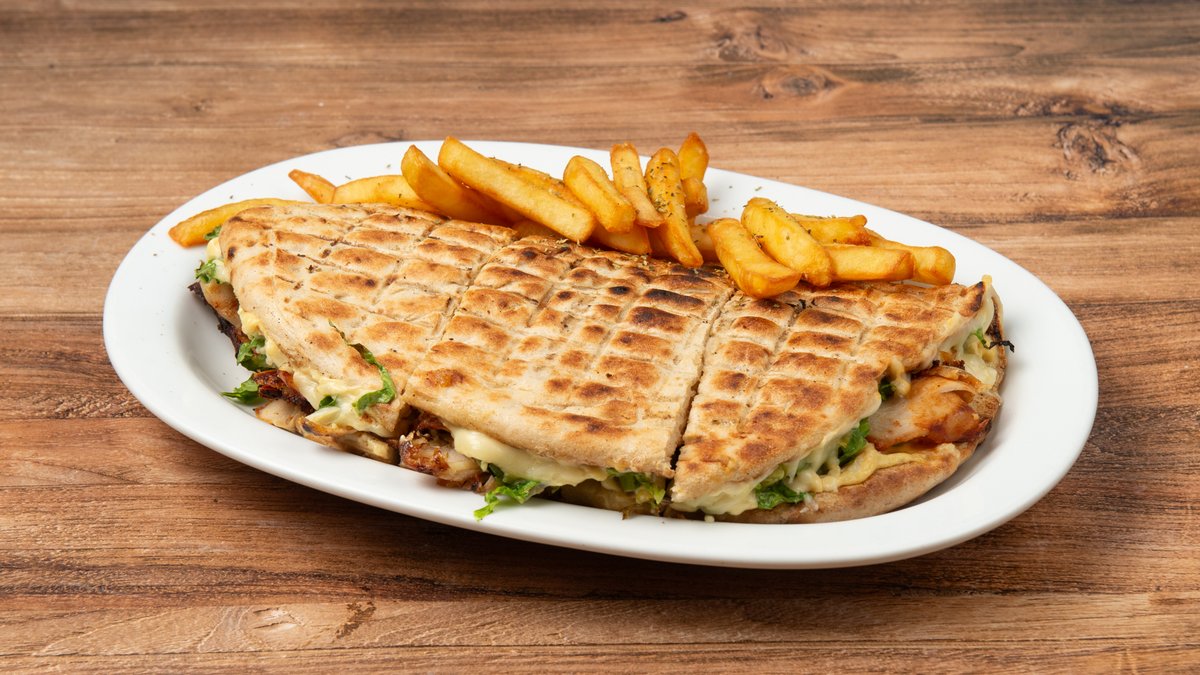 Φεγγαρόπιτα γύρος κοτόπουλο με τα υλικά της επιλογής σου. Συνοδεύεται από πατάτες τηγανητές