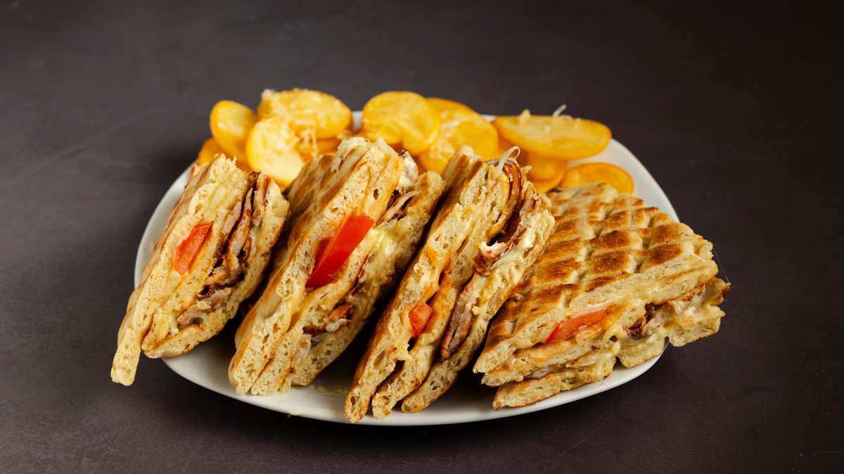 3 Τεμάχια. Συνοδεύεται από gouda, πατάτες τηγανητές, ντομάτα, σως μουστάρδας, gouda και 2 πίτες