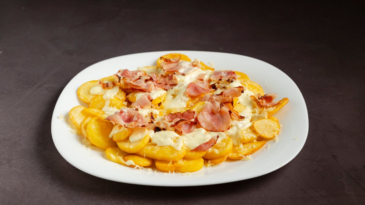 Πατάτες Τηγανητές με Gouda, Μπέικον και Σως Μουστάρδας