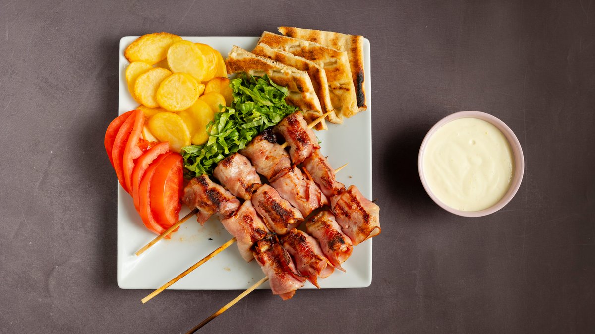 Με 4 τεμάχια κρεατικών της επιλογής σου. Συνοδεύεται από πατάτες τηγανητές, ντομάτα, μαρούλι και σως μουστάρδας