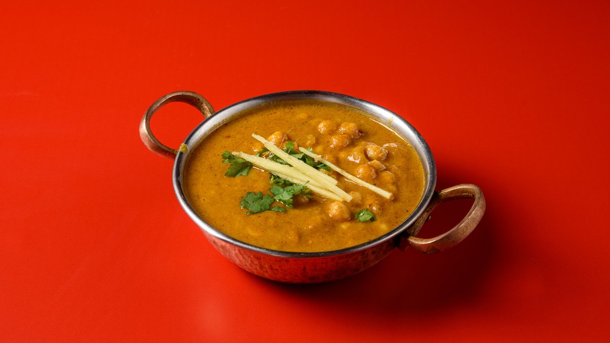 Ρεβύθια μαγειρεμένα με κρεμμύδι, τζίντζερ, σκόρδο, ντομάτα και μπαχαρικά.