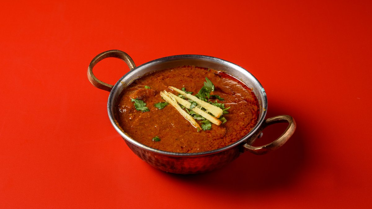 Το αρνί μαριναρισμένο και μαγειρεμένο σε μείγμα μπαχαρικών (Μασάλα) και κόκκινη σάλτσα ντομάτας