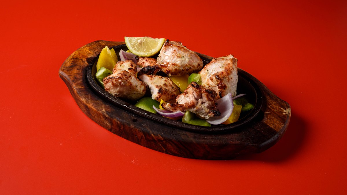 Το κοτόπουλο τίκκα μαριναρισμένο και μαγείρεμένο σε μείγμα μπαχαρικών (Μασάλα) και κόκκινη σάλτσα ντομάτας.