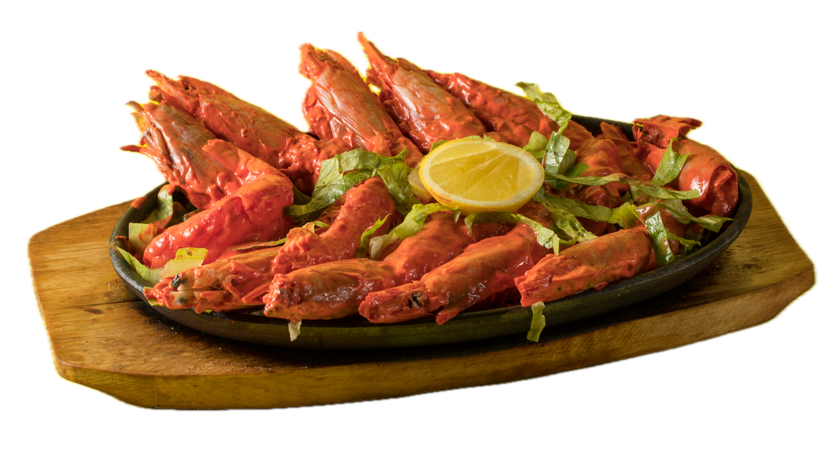 Γαρίδες μαριναρισμένες και μαγειρεμένες σε μείγμα μπαχαρικών (Μασάλα) και κόκκινη σάλτσα ντομάτας