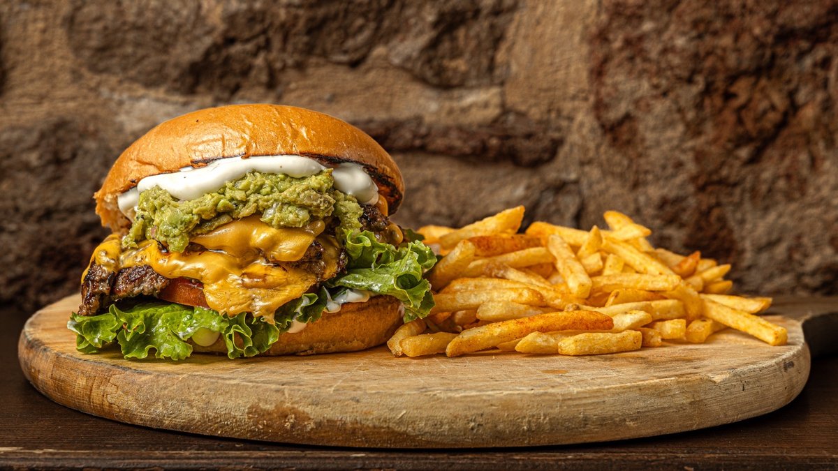Διπλό Smash Dry Aged μπιφτέκι μοσχαρίσιο, διπλό cheddar cheese, Smash αβοκάντο, πράσινη λόλα, ντομάτα, σως mayo lime