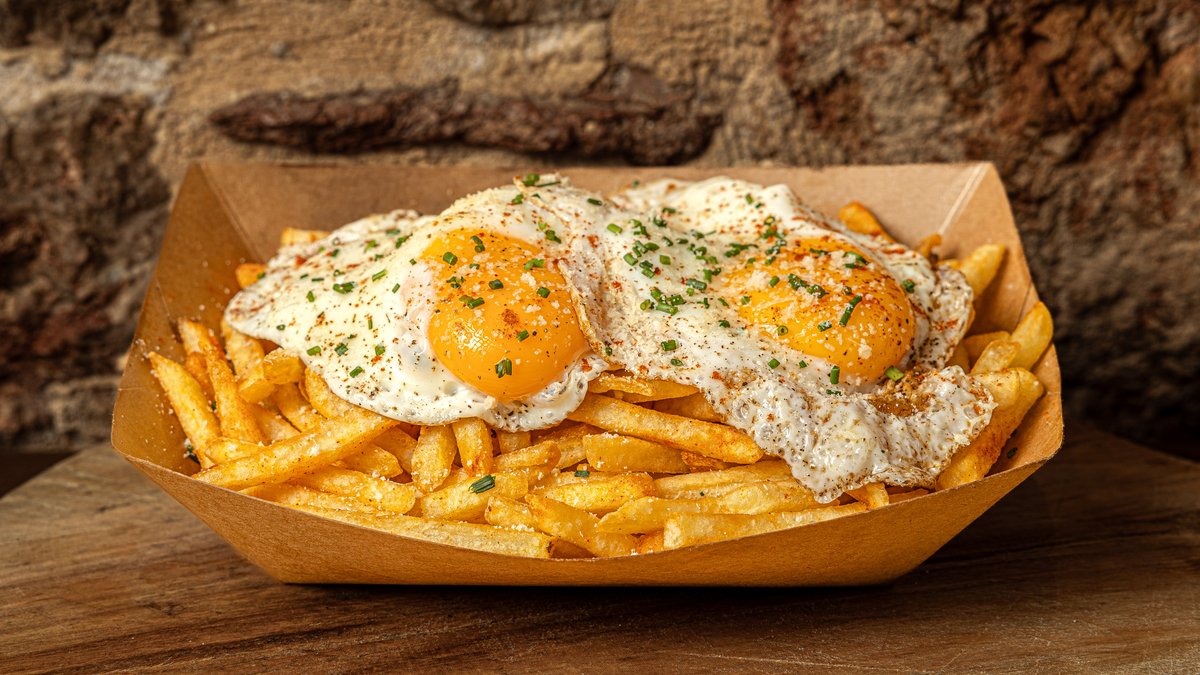 Πατάτες τηγανιτές με 2 αυγά μάτια