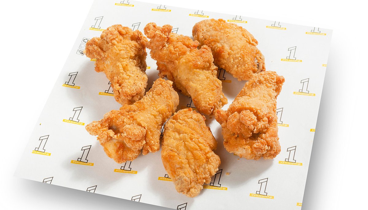 Μπουκιές από φρέσκο φιλέτο κοτόπουλο. Συνοδεύνται από πατάτες dippers και μουσταρδομαγιονέζα