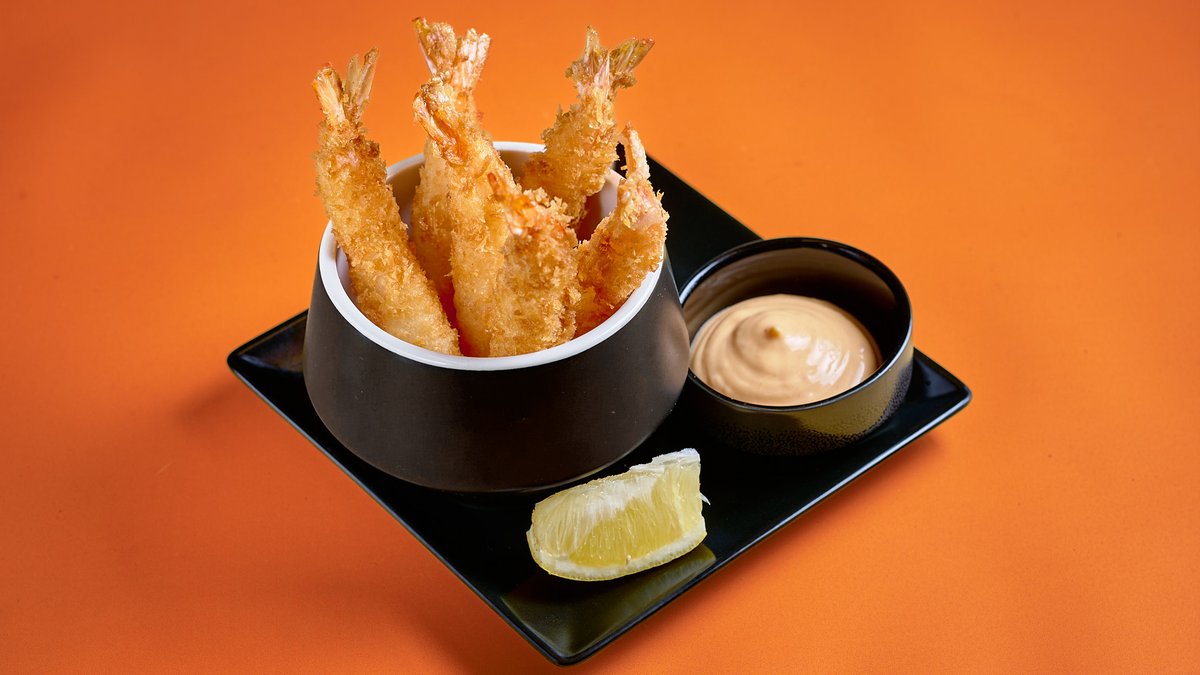 Τηγανητές γαρίδες tempura, wakame, αγγούρι, spicy mayo & teriyaki sauce