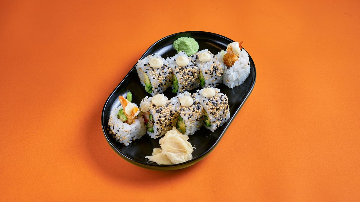8 Τεμάχια. Γαρίδα tempura, αβοκάντο, αγγούρι, aioli & σουσάμι