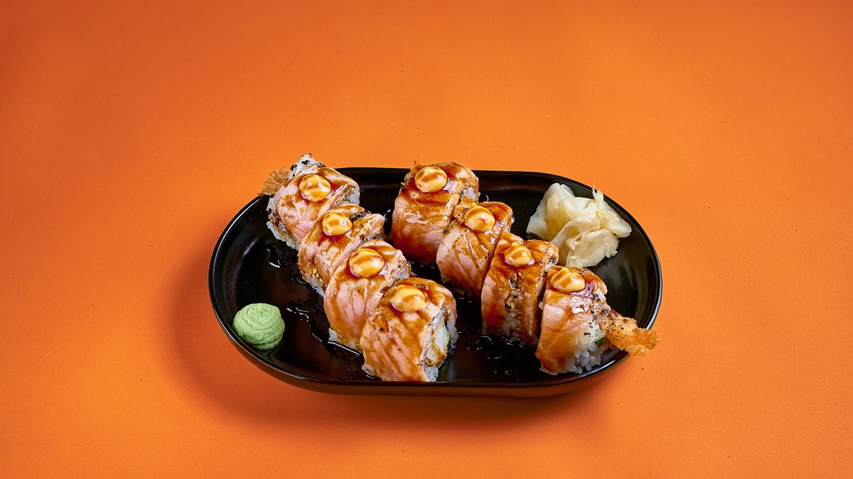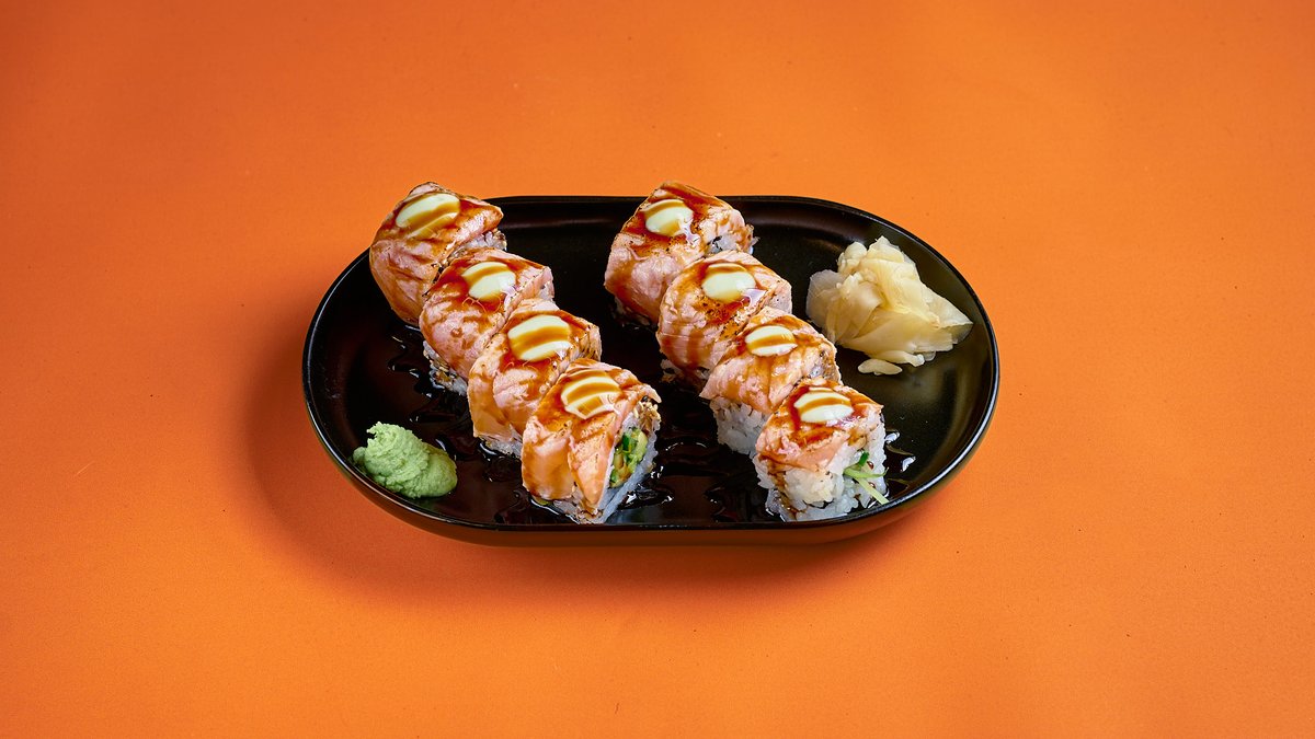 Σολομός & γαρίδα tempura, αβοκάντο, spicy mayo & teriyaki sauce