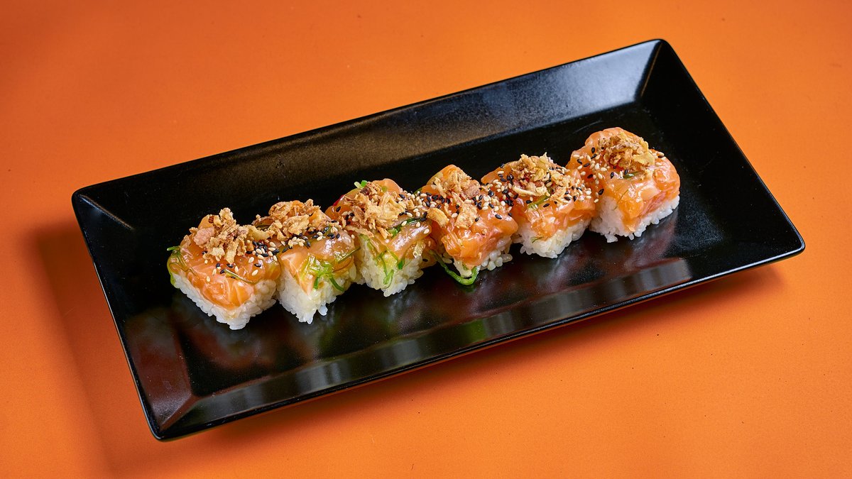 Σουσάμι, νιφάδες τραγανού κρεμμυδιού, wakame, χυμό lime & πικάντικη σάλτσα