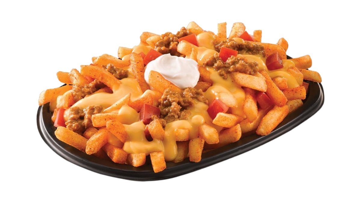 Μεγάλη μερίδα Mexican fries με καρυκεύματα, ζεστή nacho cheese sauce και δροσερή sour cream.