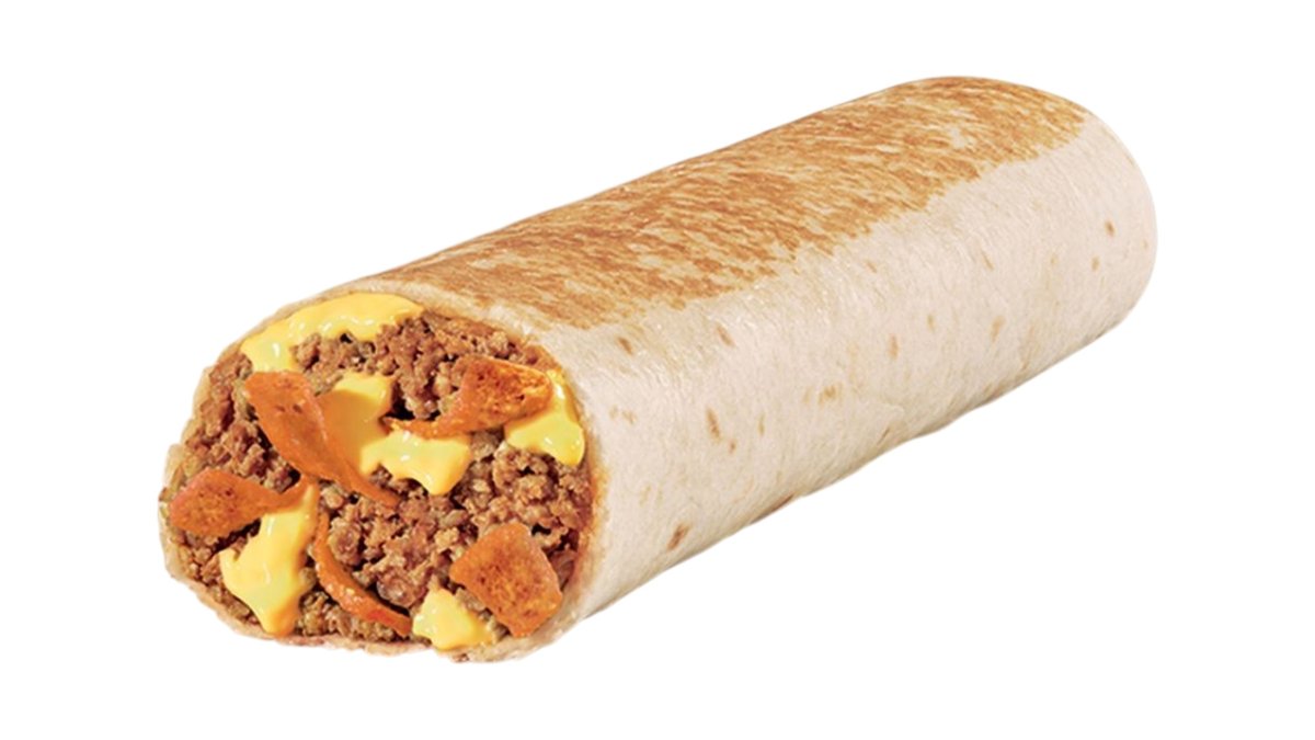 Μοσχαρίσιος κιμάς, ζεστή nacho cheese sauce και τριμμένα nacho chips τυλιγμένα σε ψημένη τορτίγια αλευριού.