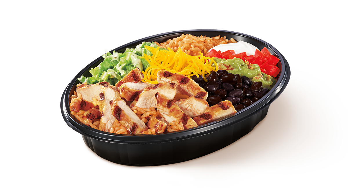 Bowl γεμισμένο με ψητό κοτόπουλο, μαύρα φασόλια, μεξικάνικο ρύζι,sour cream,τραγανό μαρούλι, ζουμερές ντομάτες,guacamole,τυρί cheddar γαρνιρισμένο με σάλτσα Cali Ranch