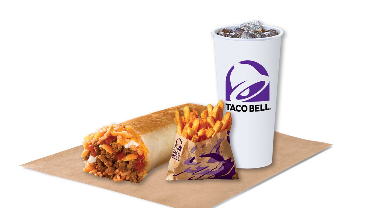Περιλαμβάνει ένα Beefy Melt Burrito ή Black Beans Burrito, ένα τραγανό ή Soft Taco, μεσαία μερίδα Nachos ή Μexican fries, Churros με ντιπ καραμέλας και ένα αναψυκτικό κανονικού μεγέθους.