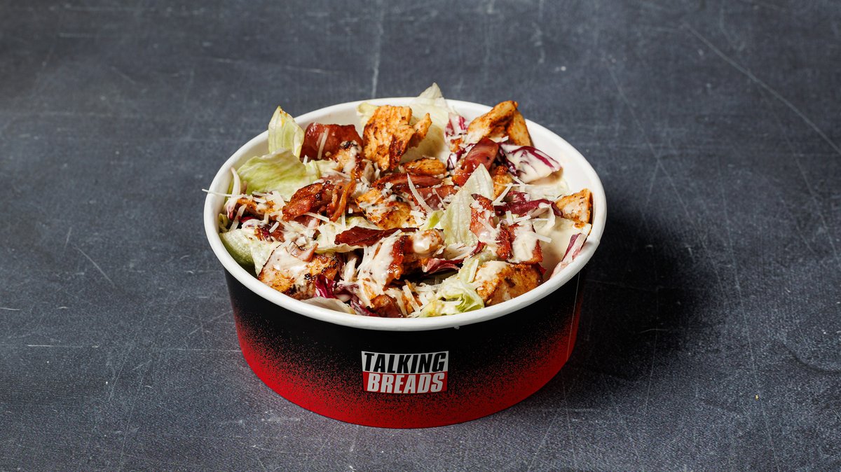 Mε κοτόπουλο, μπέικον, iceberg, ραντίτσιο, παρμεζάνα και ελαφρύ ντρέσινγκ μαγιονέζας