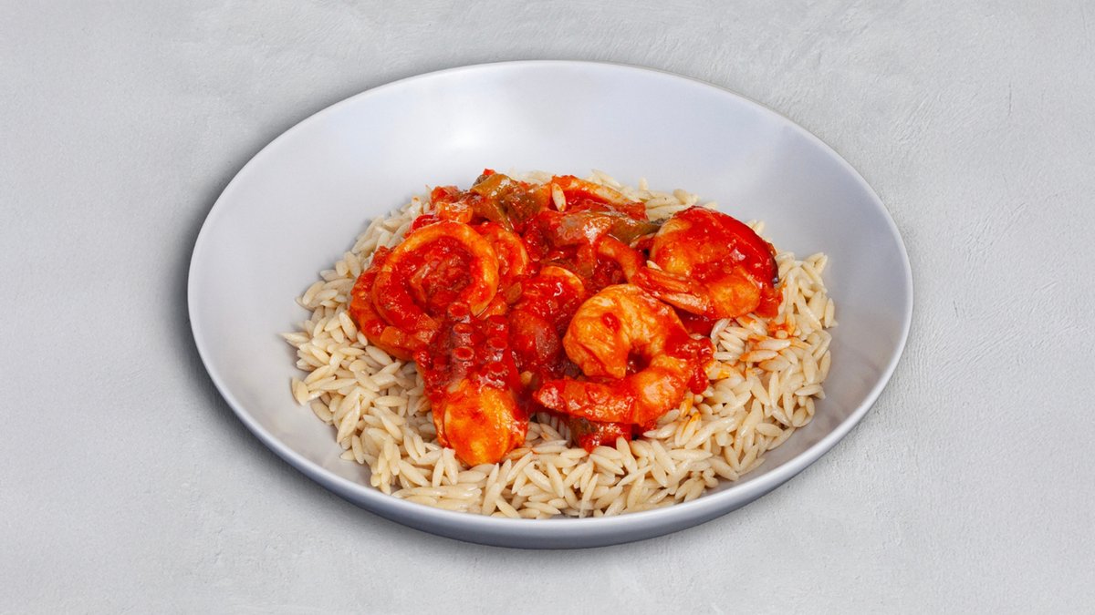 Γαρίδες, καβουρόψιχα, μύδια, καλαμάρι, χταπόδι, κριθαράκι , ντομάτα, ελαιόλαδο, κρεμμύδι, σκόρδο, λευκό κρασί, ρίγανη.