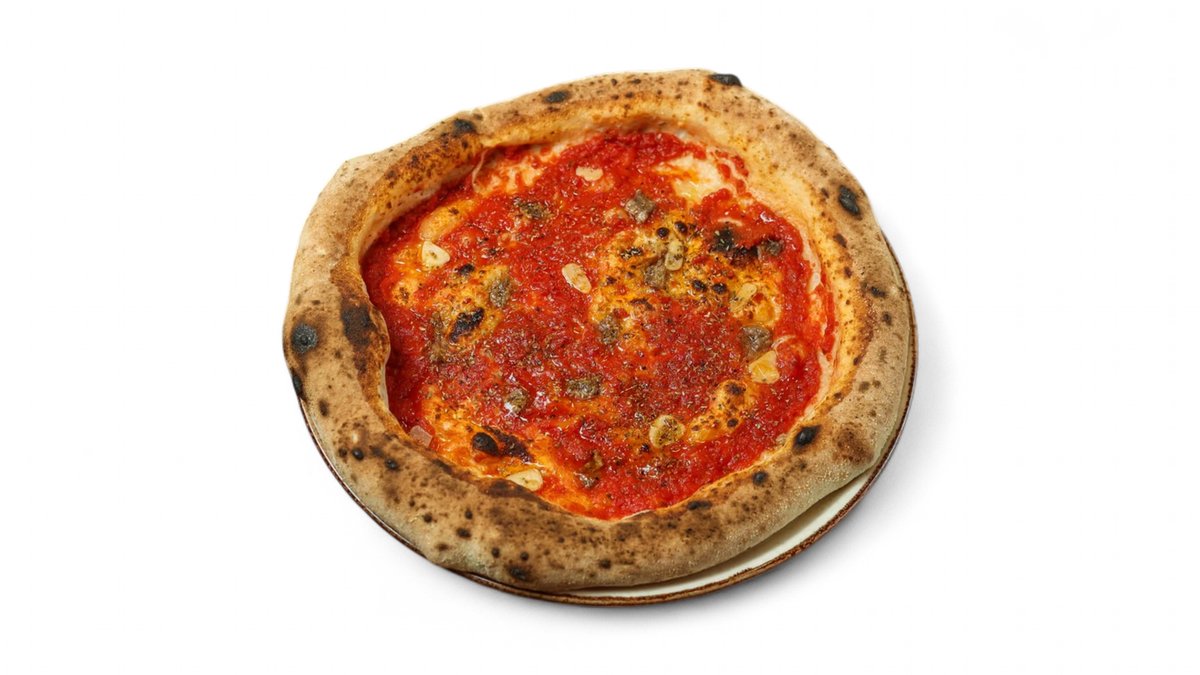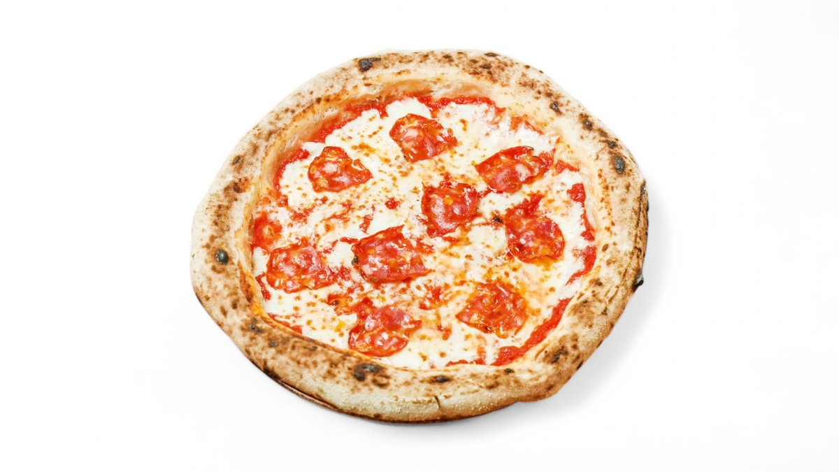 Ντομάτα San Marzano, μοτσαρέλα, σαλάμι Spianata.